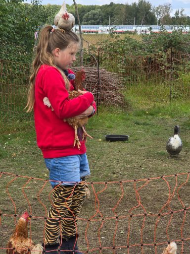 Bei uns dürfen die Kinder nicht nur zuschauen, sondern selbst mit anpacken – Futter verteilen, Tiere versorgen und spielerisch mehr über das Leben auf dem Bauernhof erfahren.